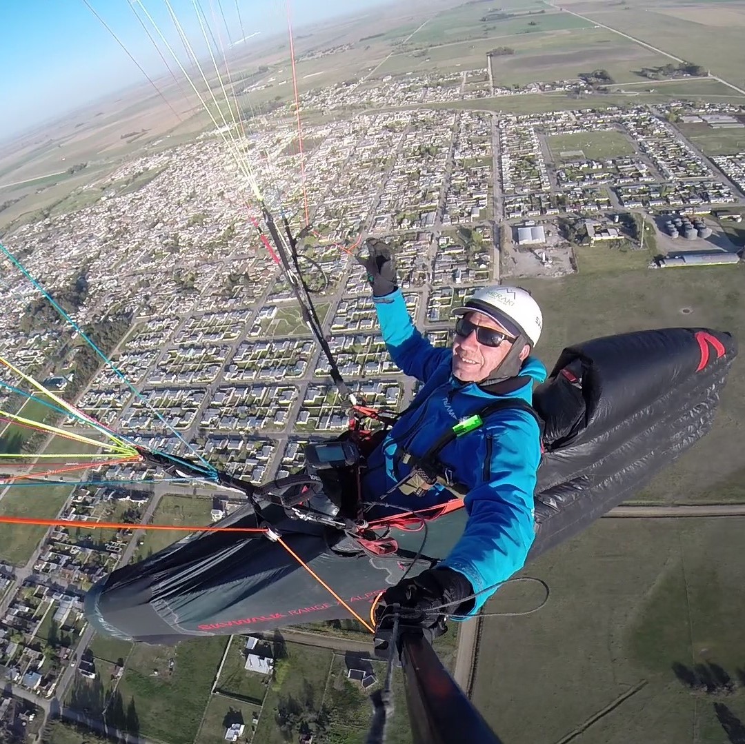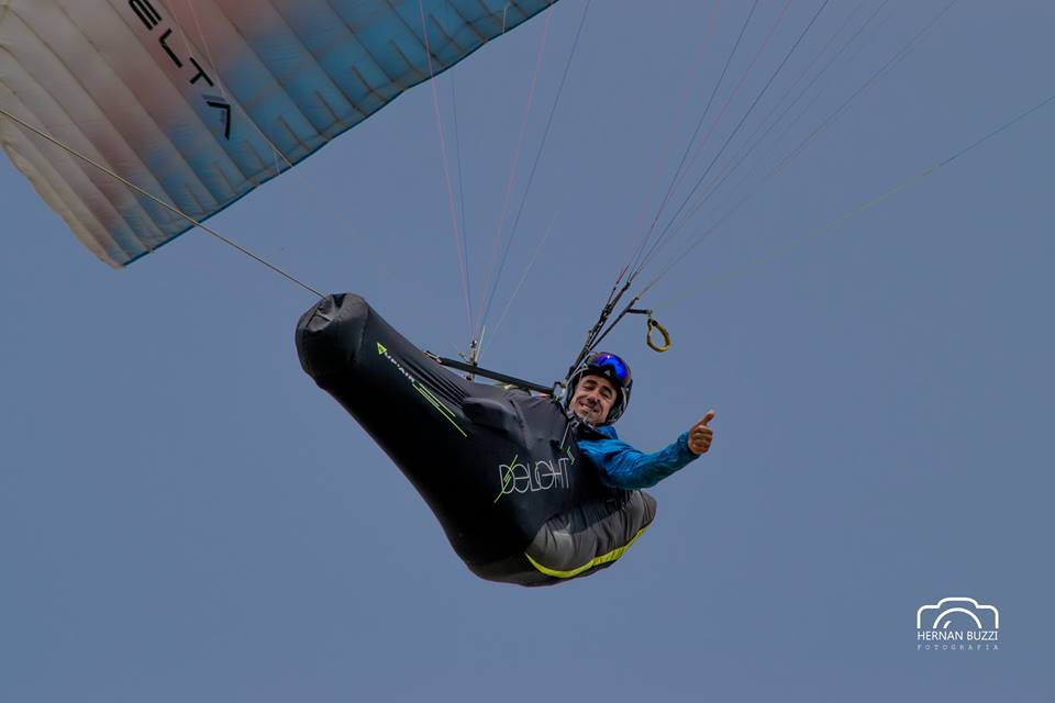 Damián es instructor federado (Licencia FAVL 443, verificar aquí) y deportista destacado a nivel Nacional e Internacional. Cuenta con varios títulos en el campeonato argentino de parapente y también récords personales, nacionales y mundiales.