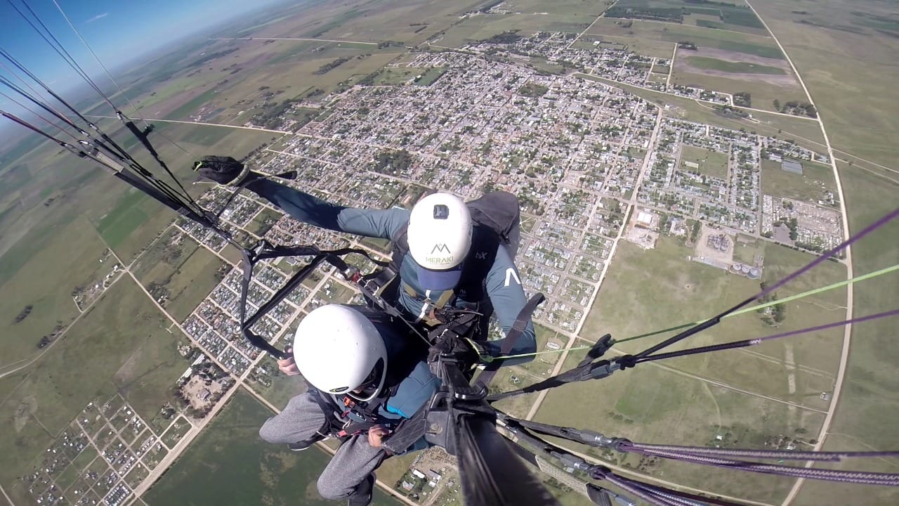 Se trata de un vuelo sin motor, en un parapente de tamaño suficientemente grande como para llevar al piloto y a un pasajero. A este tipo de parapente se lo llama “biplaza”, en referencia a sus dos plazas, o asientos.